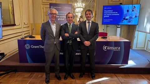 El pasado 26 de junio de 2025, profesionales del ámbito fiscal y financiero en el evento híbrido sobre desafíos y estrategias en la gestión fiscal global, organizado por Grant Thornton y el Club Cámara de Madrid.