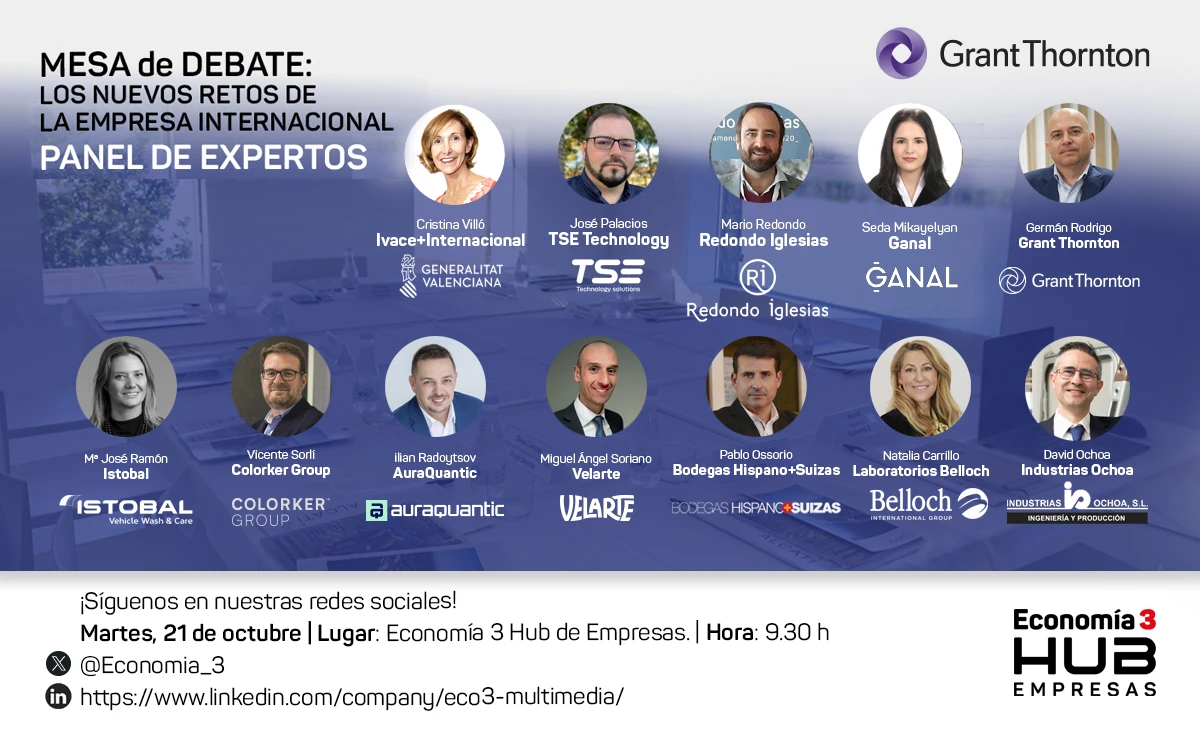 Economía 3 organiza una nueva mesa de debate centrada en los retos que afrontan las empresas en su expansión internacional, un encuentro que reunirá a directivos y expertos del ámbito público y privado para analizar las claves de la competitividad global.