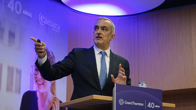 El evento, organizado por Grant Thornton y la Cámara de Madrid, reunió a destacados expertos para explorar el papel de los PPAs en la transición energética mediante las intervenciones de: José Manuel López, socio de Auditoría y Assurance No Financiero en Grant Thornton, Eduardo Tapia, Socio de Fiscal y Fernando Herrero, socio de Valoraciones de Instrumentos Financieros de la firma.