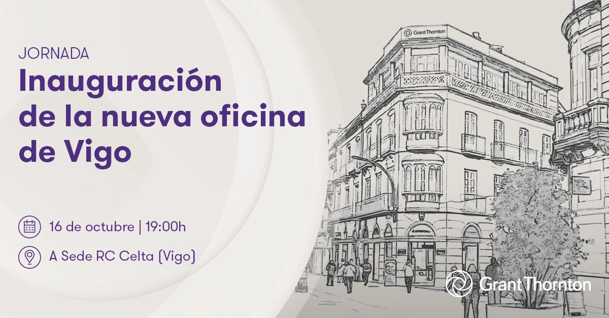 El próximo 16 de octubre a las 19:00 hrs, Grant Thornton inaugura oficialmente su nueva oficina en Vigo, reafirmando su compromiso con Galicia y con el tejido empresarial de la región.