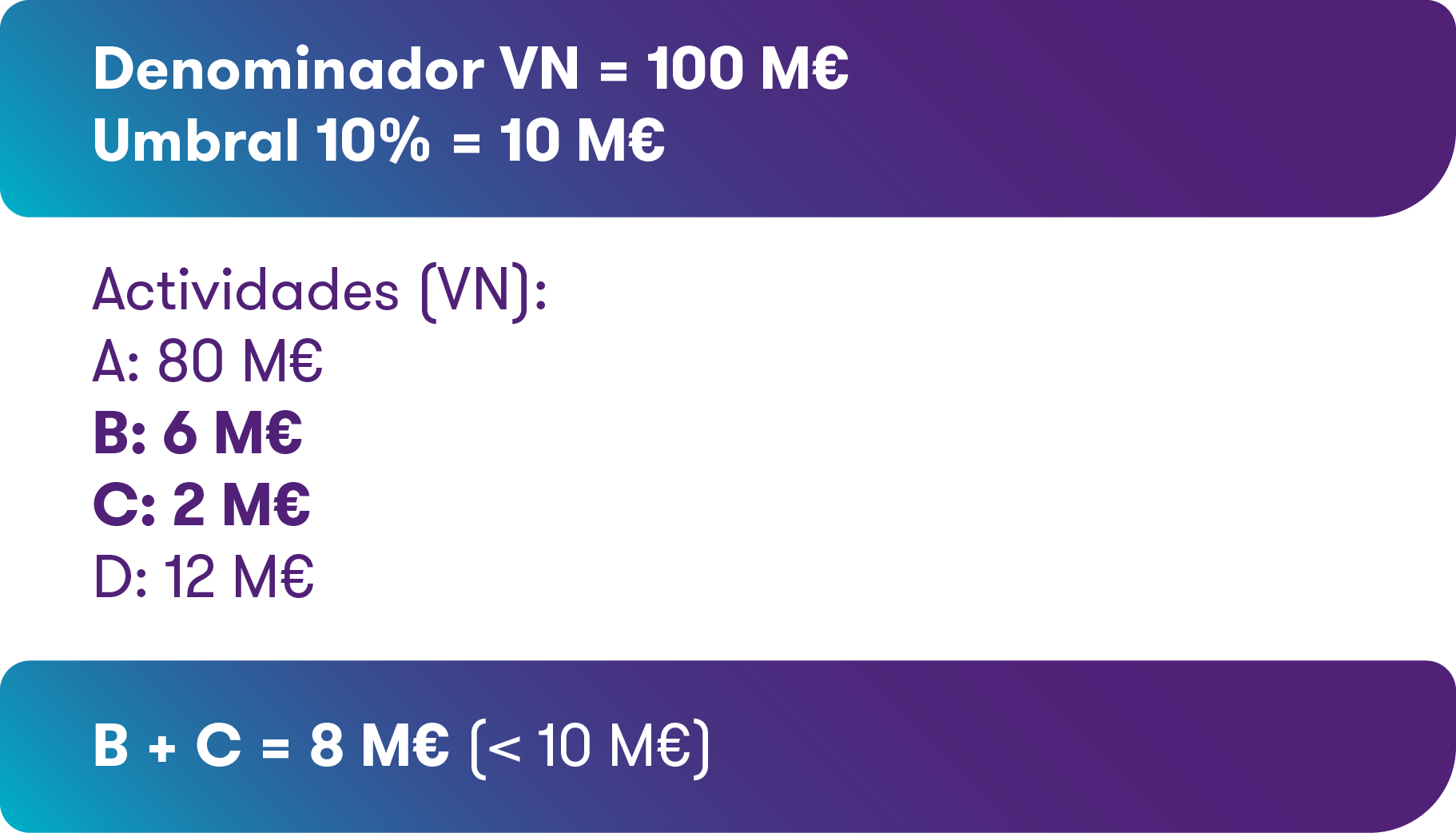 - Puede declarar B y C como no materiales porque 6 + 2 = 8 M€, por debajo del umbral (10 M€).