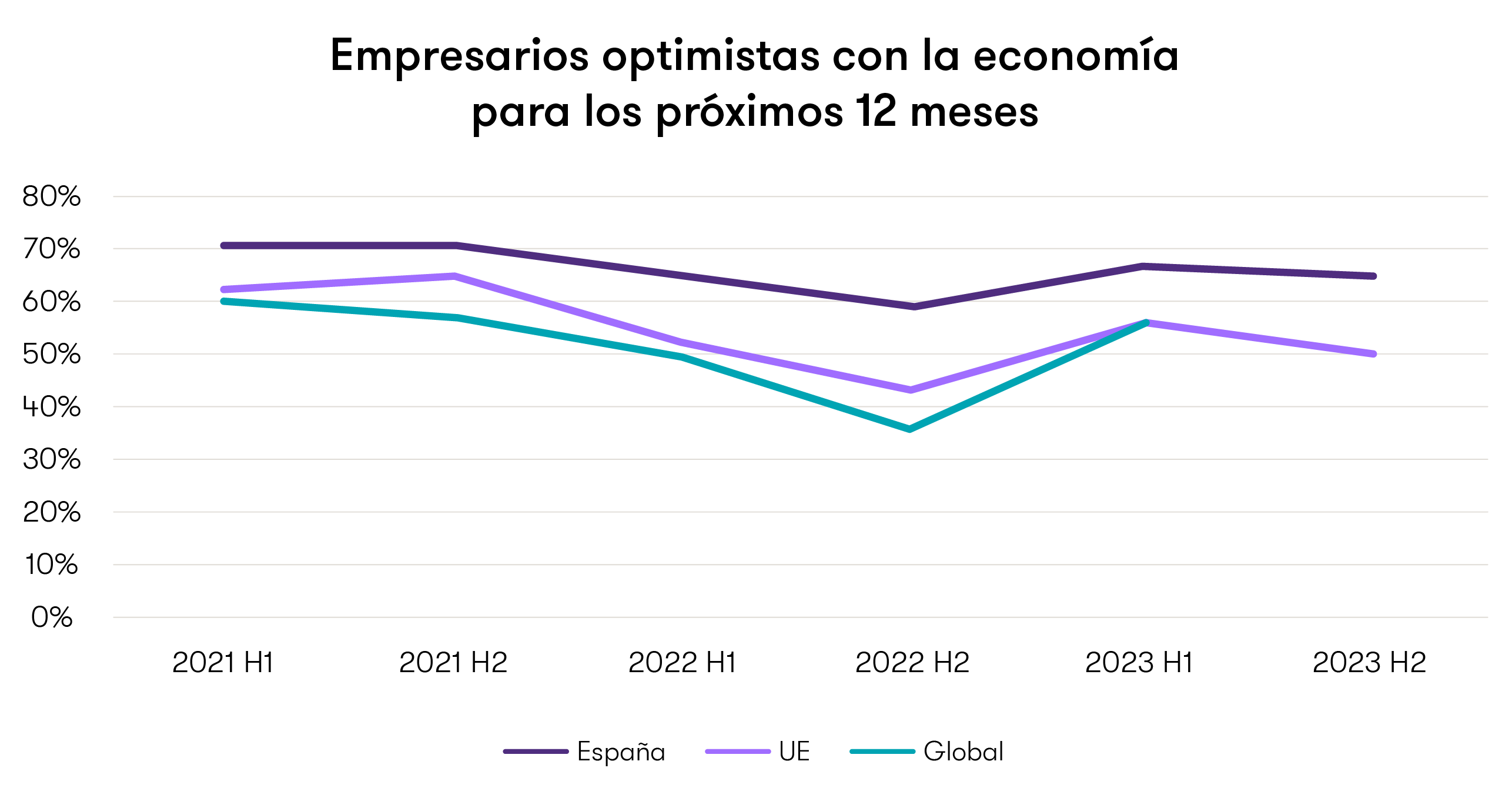 Álvaro Fernández, Socio de Auditoría de Grant Thornton: “Es destacable la tendencia observada en la que las cifras en España son más optimistas que el promedio de la Unión Europea. Esta realidad indica que la economía de nuestro país ha incrementado su solidez en los últimos años, siendo una de las naciones que mayor crecimiento ha experimentado en nuestro entorno. De hecho, en 2023, la economía española creció un 2,5%, mientras que la de la zona euro se quedó al 0,5%, por lo que nuestros empresarios se consideran mejor preparados ante el momento de disrupción que vivimos”.