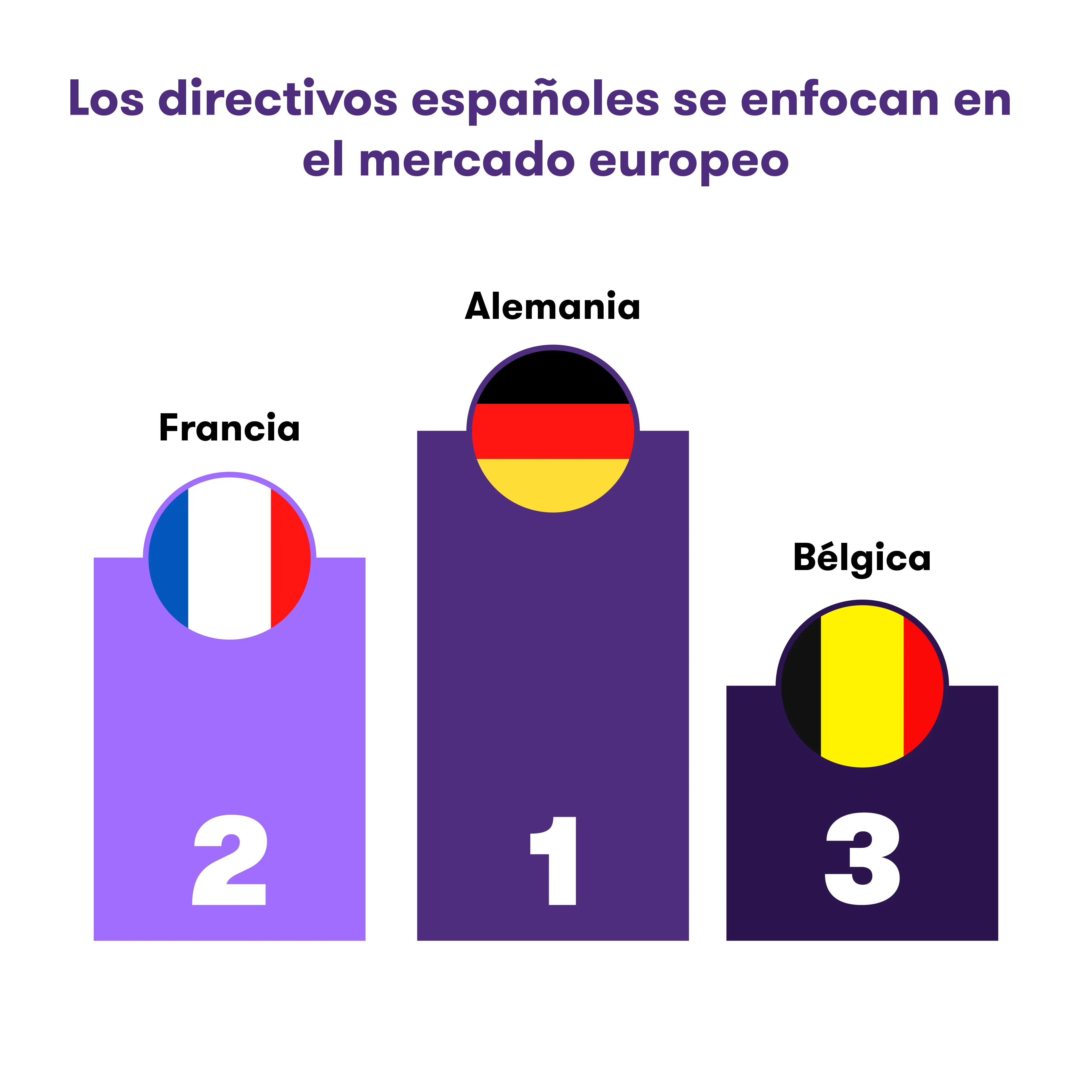 La crisis industrial en la que se encuentra inmersa Alemania parece no influir en las perspectivas de los empresarios españoles, que siguen eligiendo al país germano como el mercado idóneo para mantener o hacer crecer sus exportaciones. Como segunda opción encontramos a nuestro país vecino, Francia, cuya cercanía facilita en gran parte las operativas logísticas de estas empresas, además de mostrarse como un mercado de enorme potencial para nuestras compañías. Bélgica se ha consolidado como la tercera opción en esta última oleada del International Business Report. Esta posición se debe, principalmente, a que ambos países cooperan en sectores claves de su PIB como pueden ser el transporte, la energía renovable, la industria automotriz o la alimentación.