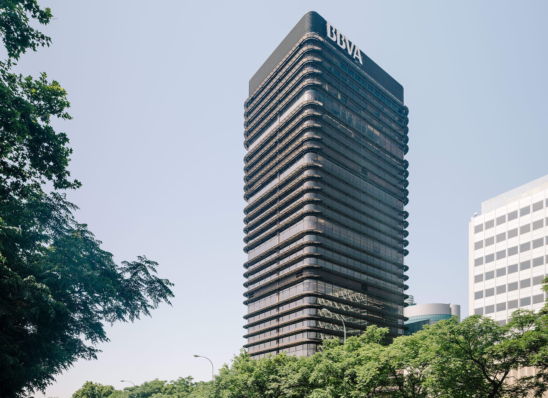 El reconocido arquitecto Javier Sáenz de Oiza fue el elegido en 1971 por el BBVA para levantar este rascacielos en el complejo financiero y comercial de AZCA. Todo un desafío, ya que la construcción debía salvar la bóveda del túnel del ferrocarril que recorre Castellana entre las estaciones de Atocha y Chamartín. Sáenz de Oiza contó con la colaboración de los ingenieros Carlos Fernández, Javier Manterola y Leonardo Fernández, quienes respondieron al problema diseñando una estructura óptima y efectiva. El arquitecto trasladó todo el peso del edificio a dos potentes núcleos de hormigón situados a ambos lados del túnel del tren, solventando de manera resolutiva el principal hándicap del proyecto.