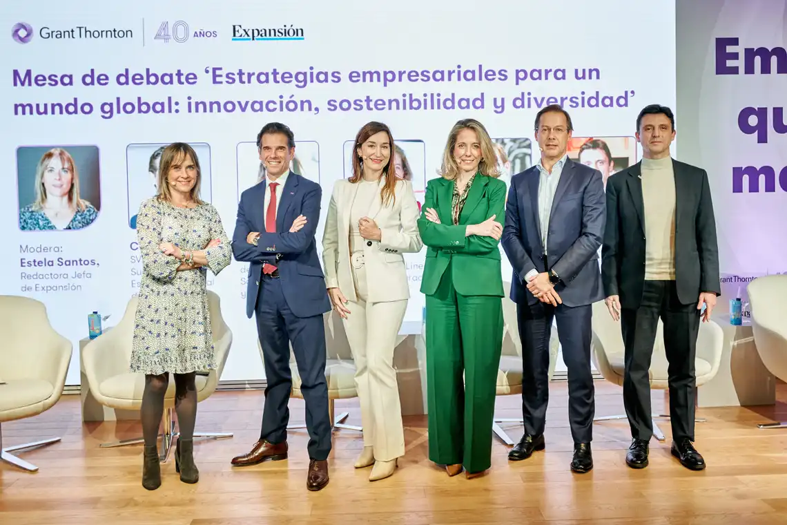 La mesa Estrategias empresariales para un mundo global: innovación, sostenibilidad y diversidad, moderada por Estela Santos, redactora jefa de Expansión, resultó crucial para tomar el pulso a compañías de diferentes sectores sobre sus perspectivas de cara al futuro.