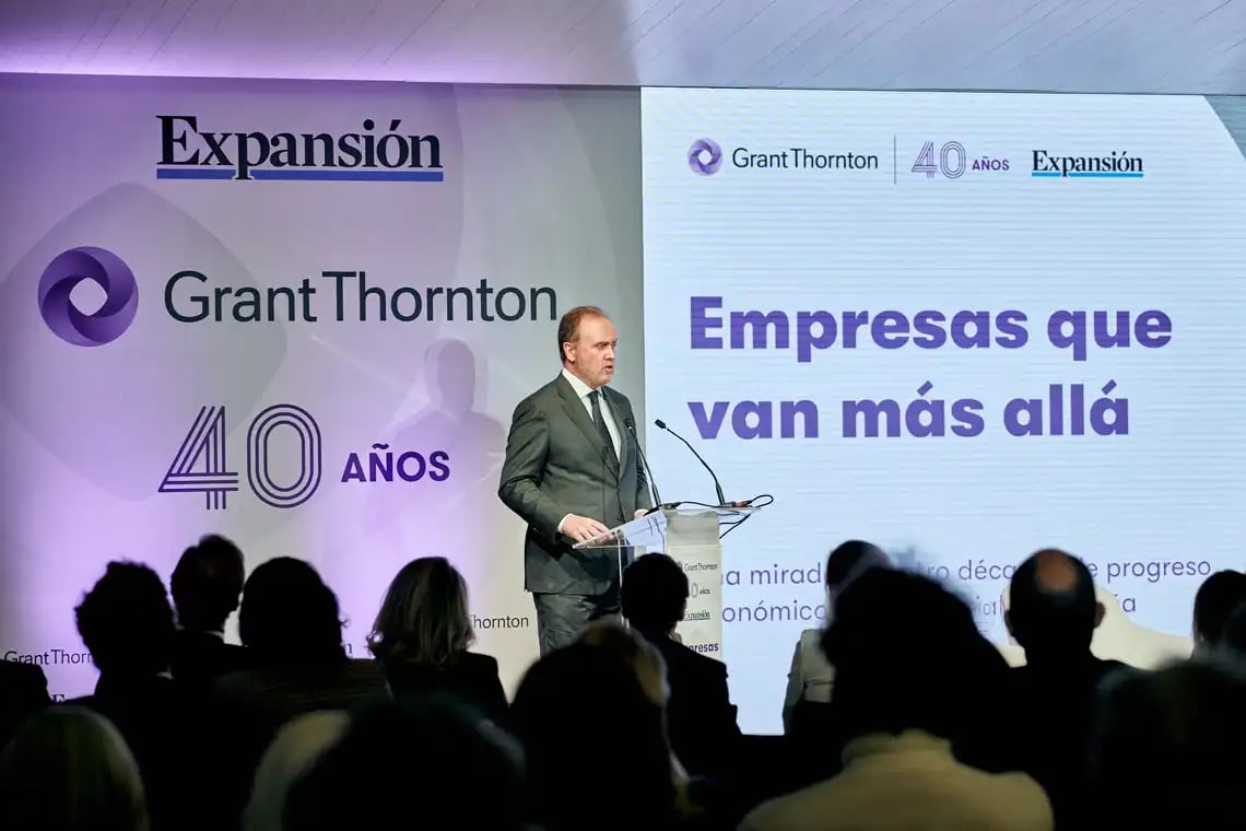 Grant Thornton ha celebrado su encuentro Empresas que van más allá con el que, además que celebrar sus cuarenta años de presencia en España, ha querido destacar la contribución de las empresas al progreso económico, social y tecnológico de nuestro país. El evento, organizado en colaboración con Expansión en la Galería de las Colecciones Reales de Madrid, ha dado cita a grandes personalidades del mundo institucional y empresarial de nuestro país y ha permitido abordar temas clave como geopolítica, competitividad, regulación, innovación, tecnología o sostenibilidad.