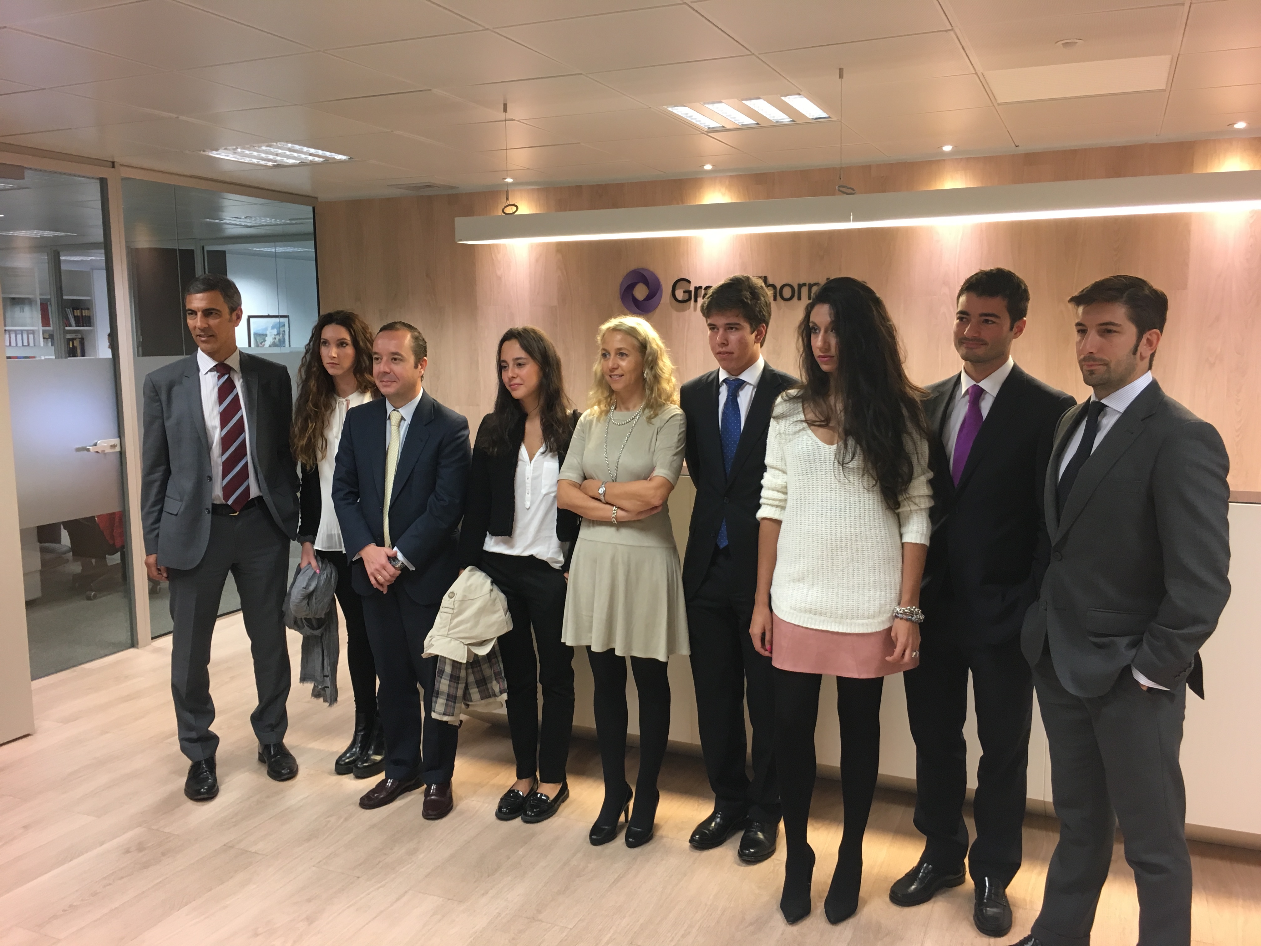 Inés Alonso, estudiante de Economía y Finanzas Bilingüe de la Universidad Autónoma, Candela Sanz Soriano, estudiante de ADE de la Universidad Carlos III, y Erick Valverde Rambaud, estudiante de ADE de ICADE, han sido los seleccionados para el encuentro. Han sido recibidos en las oficinas de Madrid por Alfredo González, socio de Auditoría de Grant Thornton, y Pablo González Costea, director de Recursos Humanos.