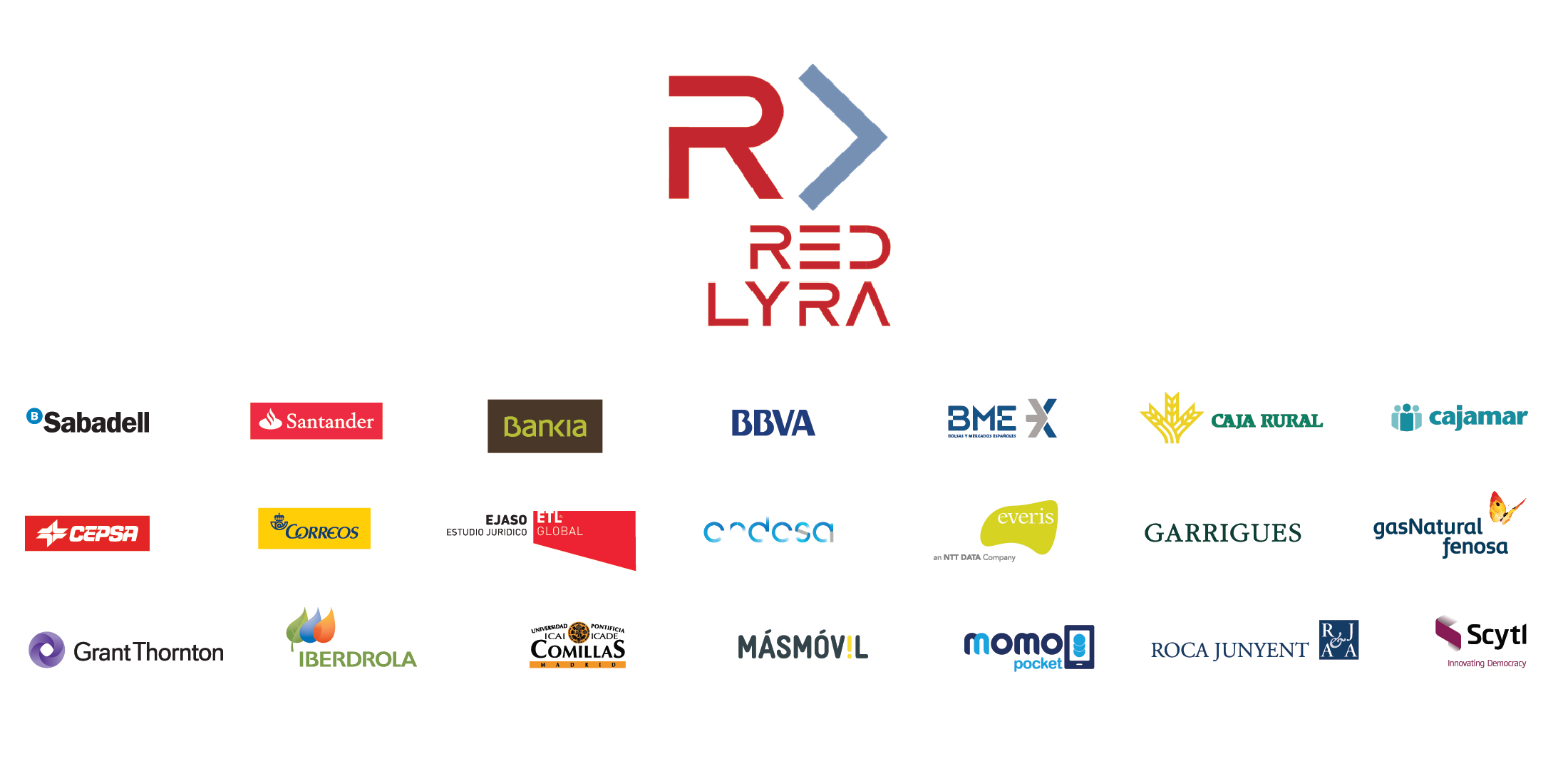 La Red Lyra nace gracias al impulso de sus socios fundadores, entre los que se han unido empresas de todos los sectores, profesionales como notarios y abogados, así como expertos en la tecnología blockchain. Sus miembros fundadores son, por orden alfabético: Banco Sabadell, Banco Santander, Bankia, BBVA, BME, Caja Rural, Cajamar, Cepsa, Correos, Ejaso, Endesa, Everis, Garrigues, Gas Natural Fenosa, Grant Thornton, Iberdrola, Comillas ICADE, MásMóvil, Momopocket, Notarnet, Roca Junyent y Scytl. La Red se ha presentado hoy en la Universidad Pontificia Comillas, con el apoyo del Observatorio Fintech Comillas-Everis.