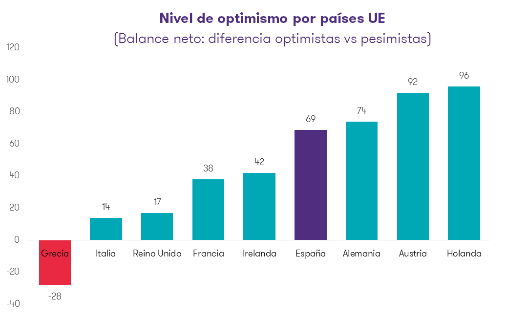 El optimismo de empresarios y directivos españoles crece 26 puntos y alcanza el 69%