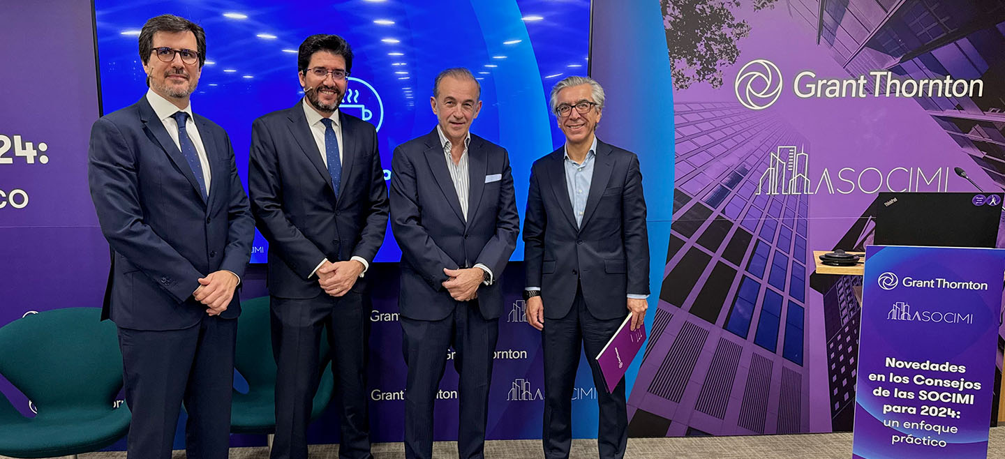La dualidad entre los cargos directivos y de administración, la incertidumbre fiscal y su impacto en la gobernanza, o las responsabilidades civiles caracterizan la realidad, no solo ya de las SOCIMI, sino de las sociedades en general. Estas han sido algunas de las conclusiones de la jornada “Novedades en los Consejos de las SOCIMI para 2024”, organizada por Grant Thornton en colaboración con ASOCIMI y que contó con la participación de David Calzada, Socio de Auditoría de Grant Thornton; Javier Basagoiti, Presidente de ASOCIMI; Juan Carlos Martín, Socio de Laboral de Grant Thornton; Eduardo Cosmen, Socio director de Fiscal de Grant Thornton, y Roberto Benito, Socio de Mercantil de Grant Thornton.
