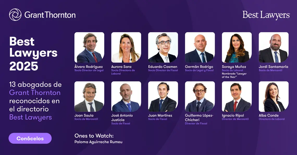 Los tres socios directores de las áreas jurídicas de la Firma vuelven a revalidar su posición: Aurora Sanz, socia directora de Laboral; Álvaro Rodríguez, socio director de Legal Mercantil; Eduardo Cosmen, socio director de Fiscal. Junto a ellos, han sido también designados otros socios, como Juan Martínez, que desarrolla la línea de Precios de Transferencia a nivel nacional; Jordi Santamaría y Joan Saula, socios de Legal que ejercen su práctica desde la oficina de Barcelona; José Antonio Justicia, director de Fiscal en la capital catalana; Germán Rodrigo, socio director de Tax & Legal de Grant Thornton en la Comunidad Valenciana, junto a Soraya Muñoz Carreras, socia de Laboral también este territorio y que además también ha sido nombrada “Lawyer of the year”.