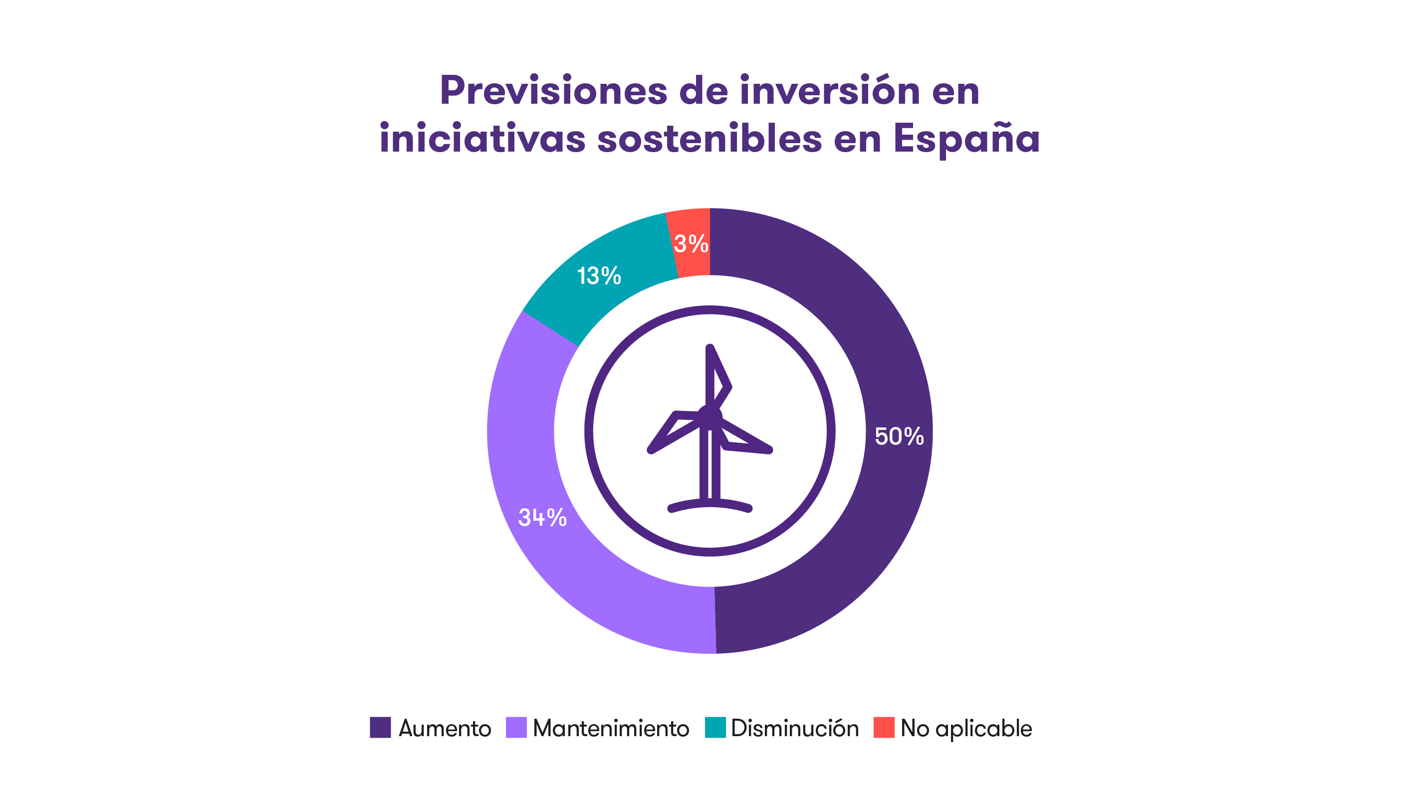 Las prioridades de inversión en España se concentran en áreas tangibles: energías renovables (49%), gestión de residuos (33%) y descarbonización (31%), situándose por encima de la media europea en estos ámbitos. Por contra, las compañías españolas tienen previsto invertir menos que sus homólogas europeas en procesos como la digitalización para la eficiencia energética o las compras sostenibles dentro de la cadena de suministro.